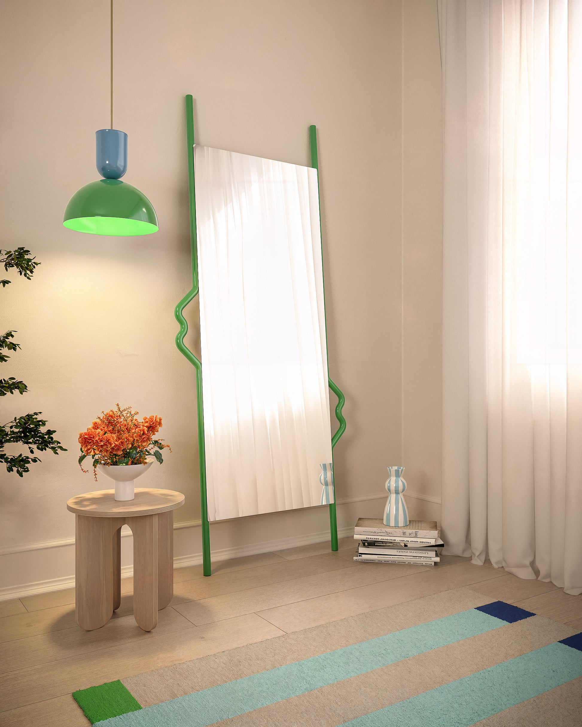 The Pose Mirror is a floor-standing mirror playfully inspired by the founder of KDS, Seugnet Snyman’s, two toddlers and their numerous (and humorous) reactions to their own reflection. What toddler doesn’t like a mirror, right?